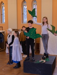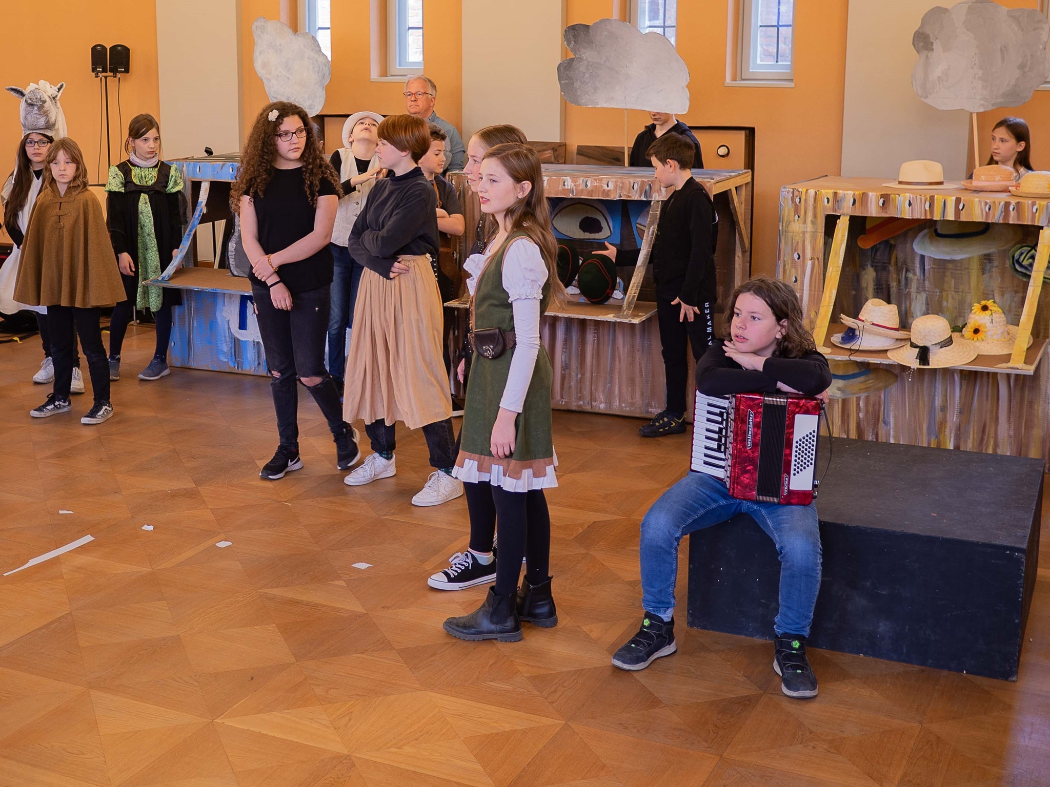 „Undine klingt“ ist ein echtes Gemeinschaftswerk geworden. Lilly Sophie Altenkirch (14) hatte 2021 die Geschichte erfunden. Drehbuch und Regie übernahm Urban Luig. Die musikalische Bereicherung stammt aus der Feder von Bernhard Barth und Jessica Dörhöfer leitete die Kinder bei der liebevollen Gestaltung von Bühnenbild Kostümen an. Unterstützt wurden sie von Augustin Strizzi am Schlagzeug und von zahlreichen guten Geistern im Hintergrund.